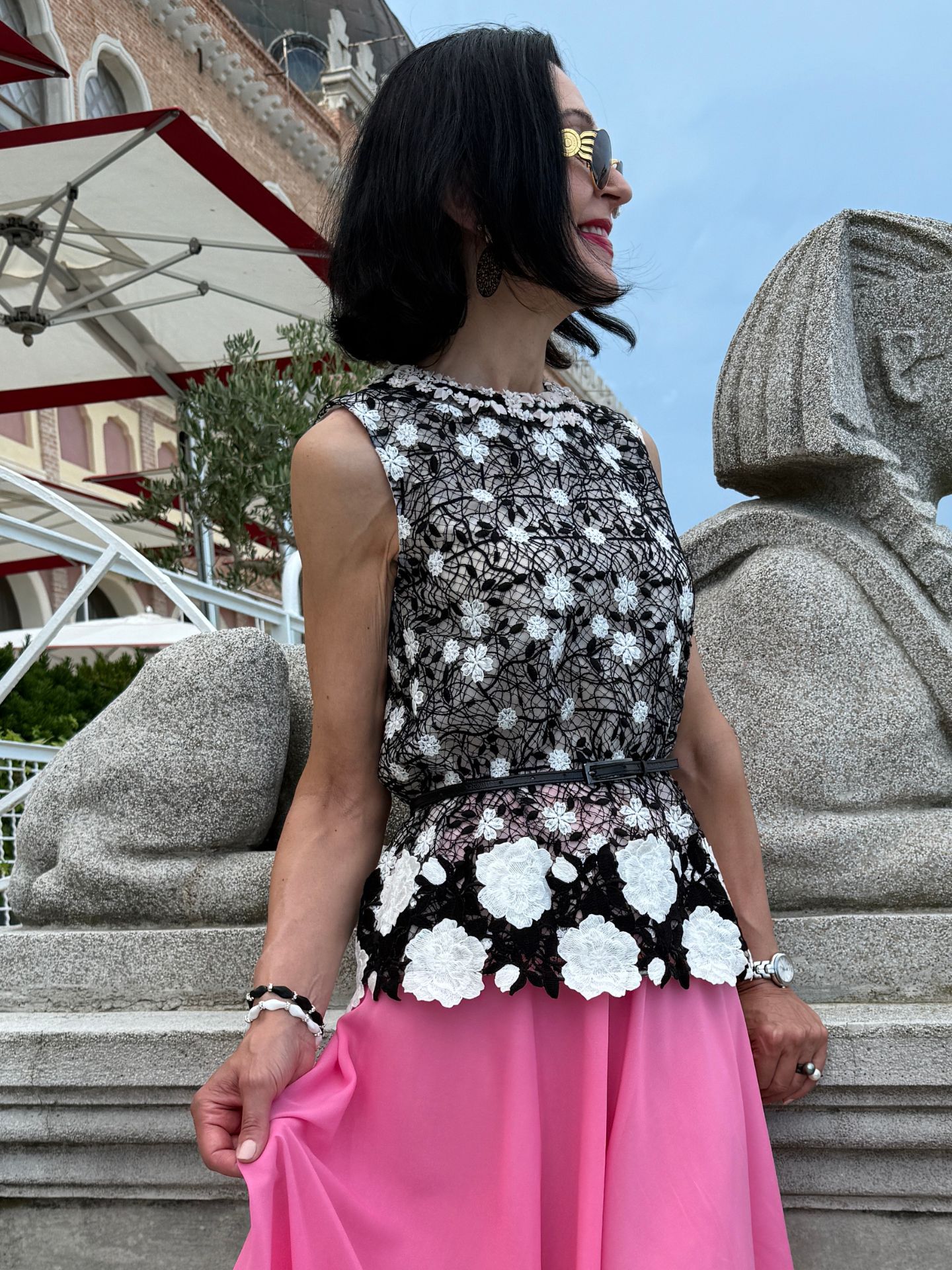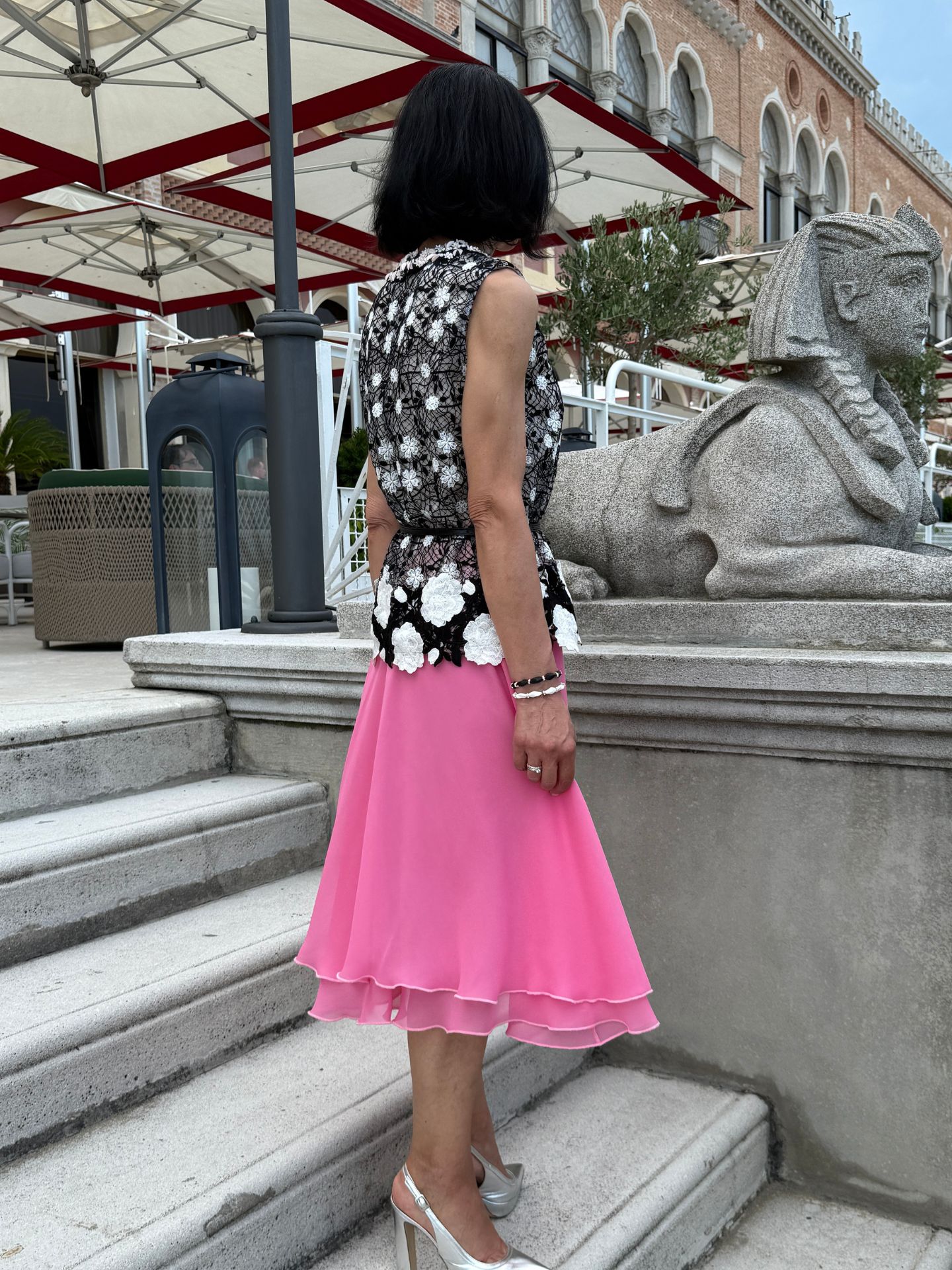 Rosa, aber nie zu lieblich. Die Kombination aus kraftvoller Farbe und feiner Spitze schafft Spannung und Stil. Ein Ensemble für besondere Momente.