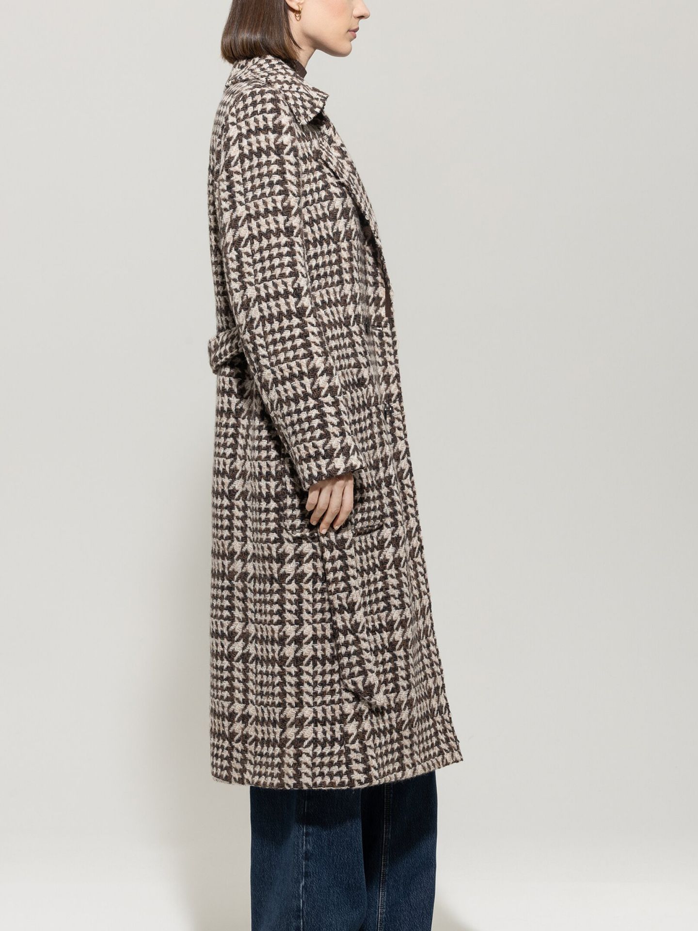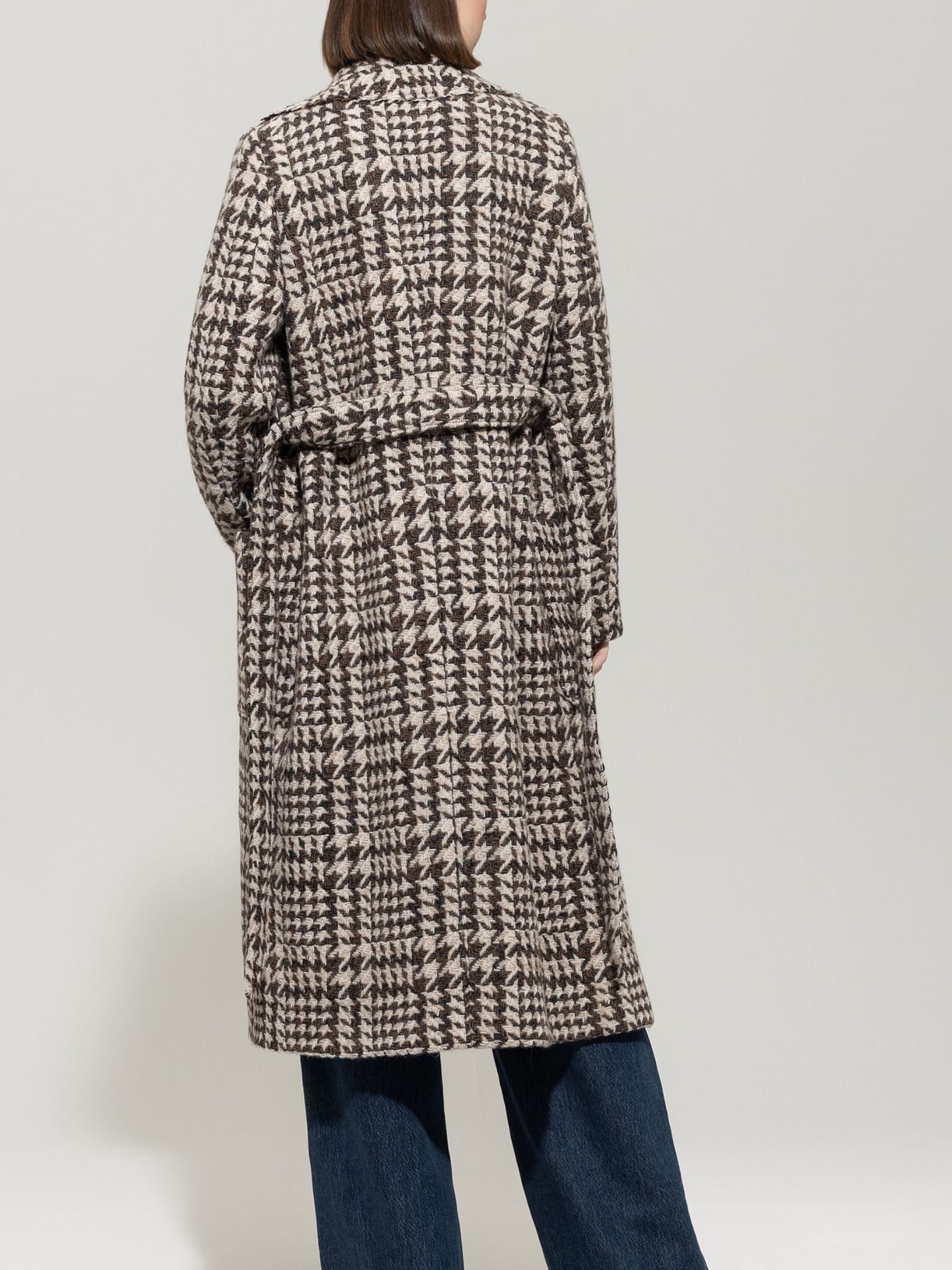 Glencheck-Mantel mit Gürtel